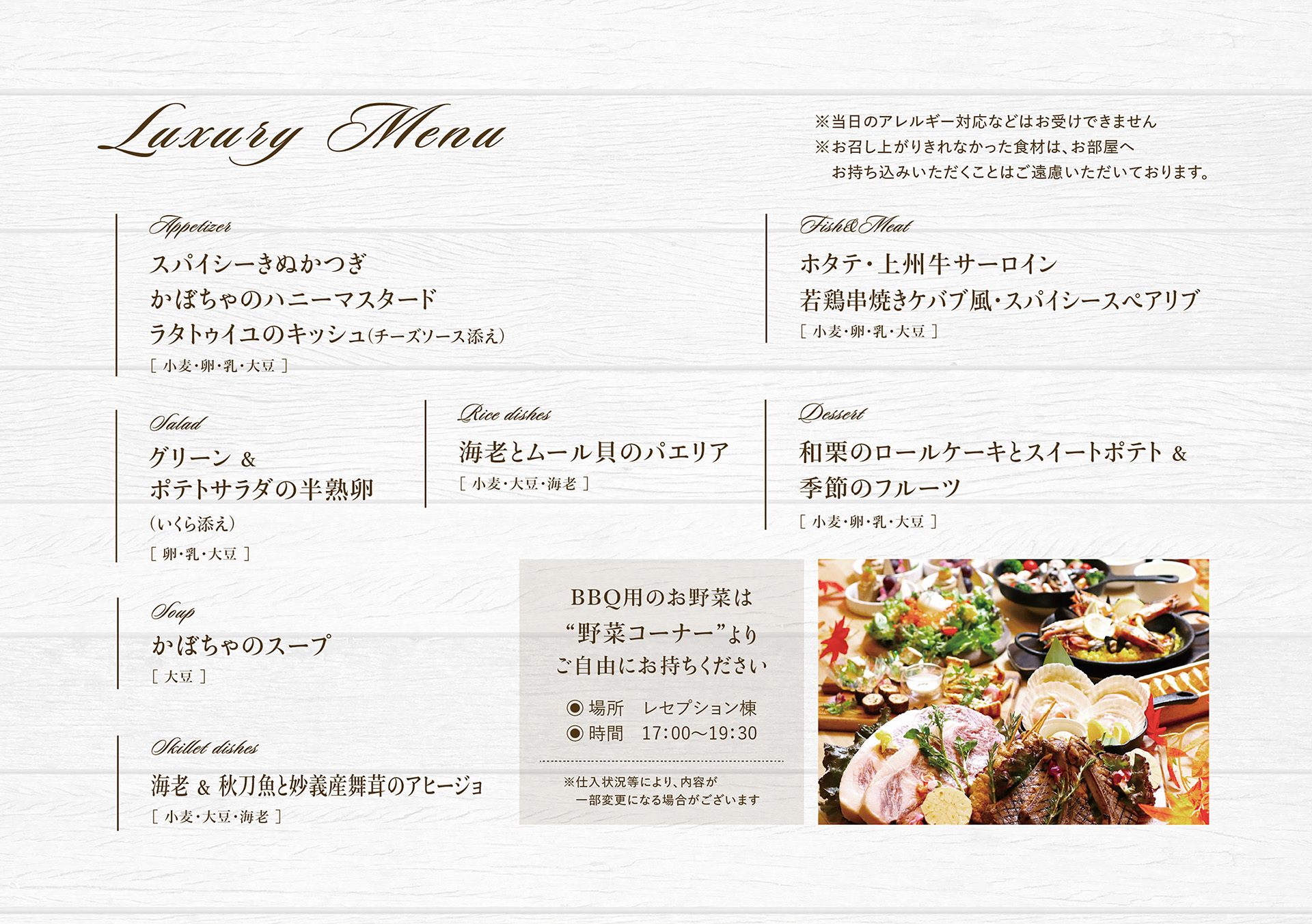 夕食メニュー ▶︎ スタンダード / ラグジュアリー